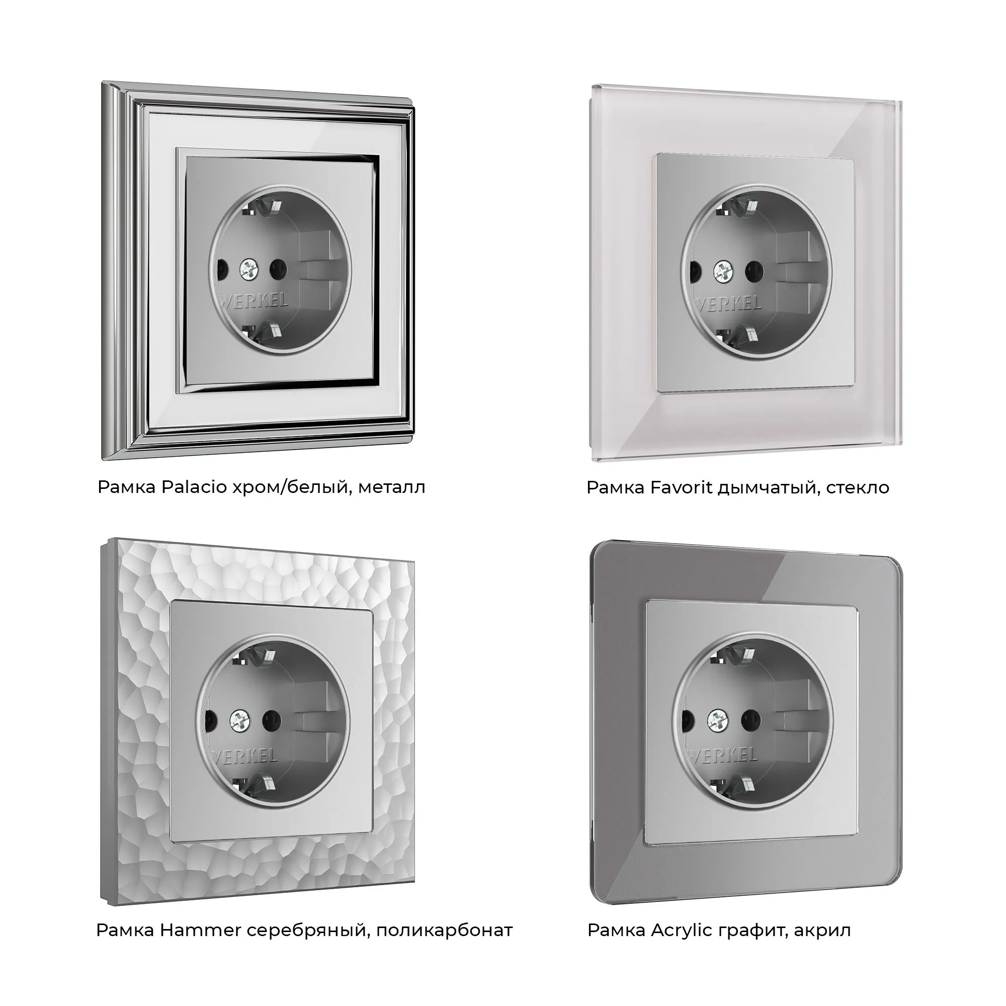 Лицевая панель изготовлена из высококачественного поликарбоната, устойчивого к высоким температурам. Розетка с заземлением совместима со всеми рамками из коллекции Werkel, удобна в использовании и обеспечивает надёжный контакт.